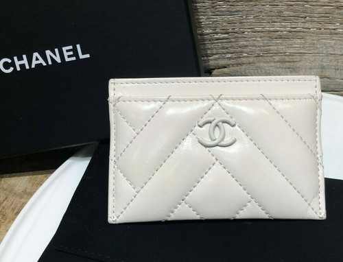 Auth Chanel White Glazed Calfskin Card Holder Case White Cc Logo Classic Quilted Ebay